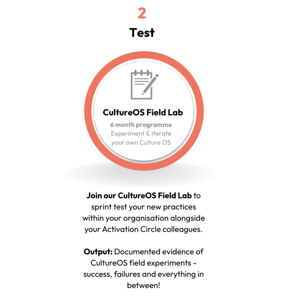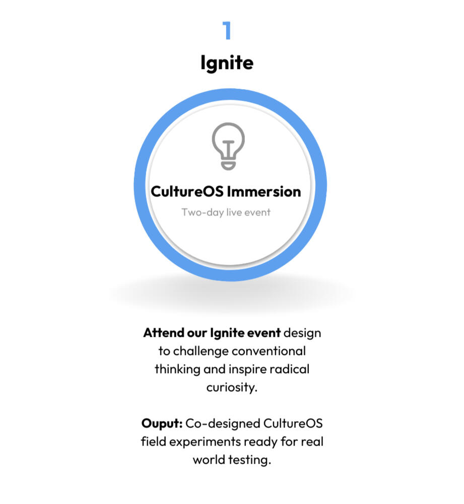 Because cookie-cutters just won't cut it for your teams. Create your own CultureOS by ideating, experimenting, getting feedback and iterating in our field lab sprint.